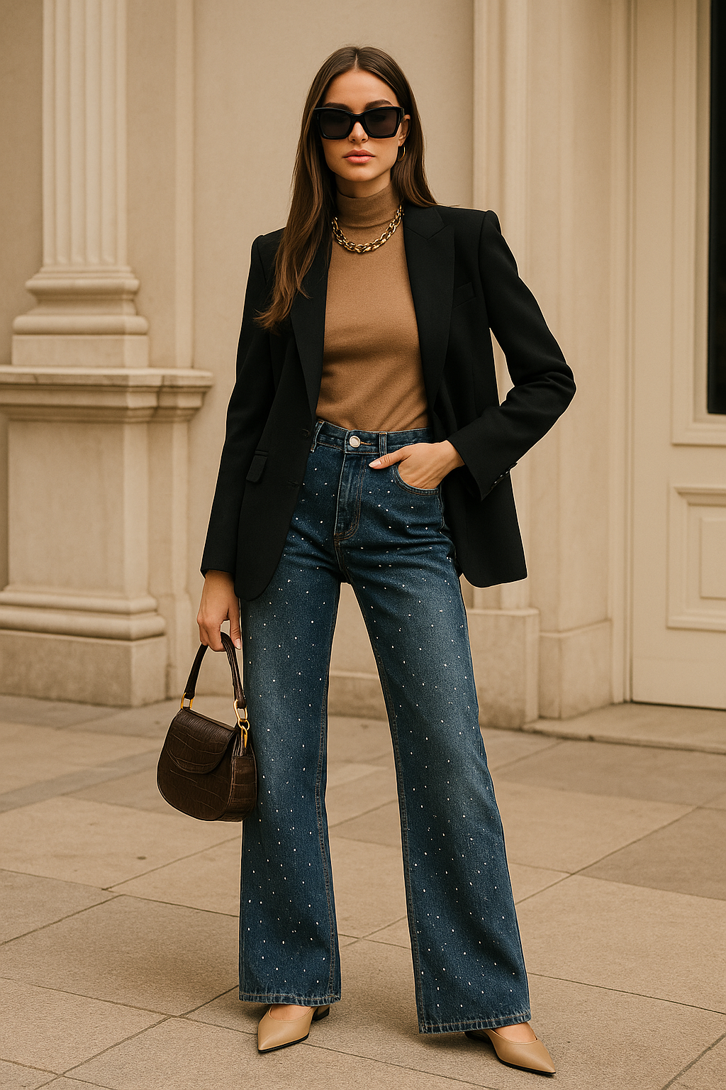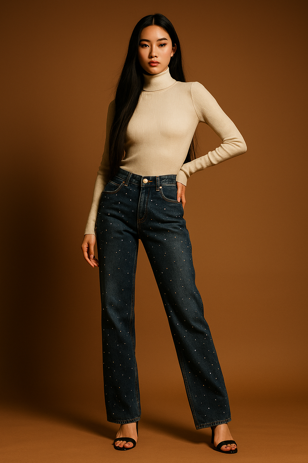 Add a touch of sparkle to your everyday look with these Korean-inspired high-waist jeans. Designed with a flattering sculpting fit and subtle rhinestone details, they offer the perfect mix of comfort and style.